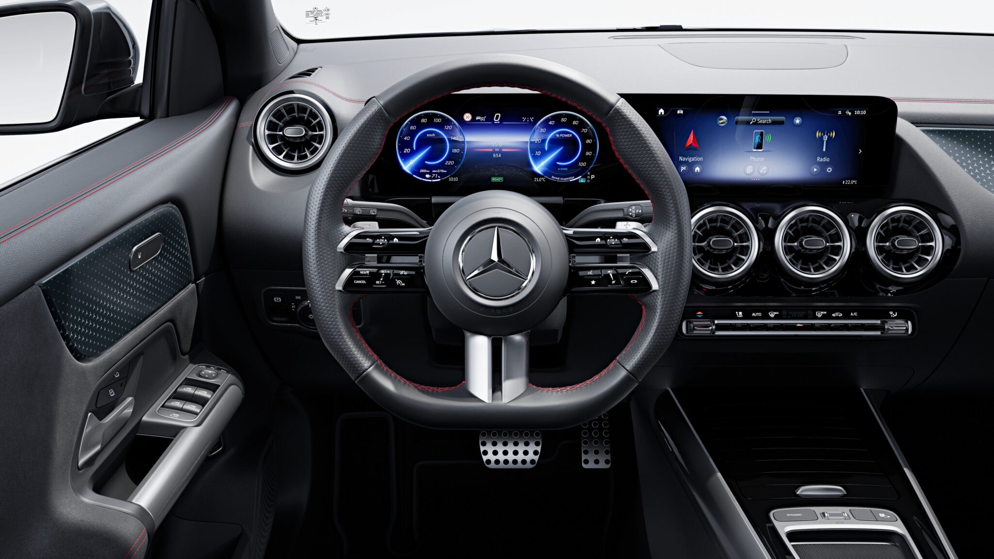Məkan haqqında ilk təəssürat həqiqətən vacibdir: EQA-nın daxili dizaynı geniş interyerin, yüksək texnologiyalı avadanlıqların və idman xarakterinin uğurlu sintezi ilə heyran qalır. Tamamilə elektrikli sürməyə keçid məhz bu qədər cəlbedici ola bilər. Burada da fərdiləşdirmə üçün kifayət qədər yer var: ətraf işıqlandırma və zövqünüzə uyğunlaşdırıla bilən müxtəlif bəzək elementləri kimi xüsusiyyətlərlə yeni EQA-nı fərdiləşdirin. Rahat oturacaqlar və yeni sükan səyahətinizi xüsusilə rahat edəcək.
